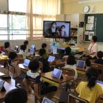 「サマービンゴゲーム」は、タブレットを使用しました。1年生もタブレット初挑戦でしたが、「夏と言えば〇〇」のキーワードを映像を見ながら、ビンゴカードにどんどんマルをつけていきました。