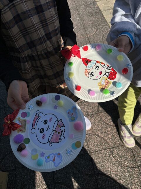 亀山東小学校の児童と保護者も参加しに来ていて、クリスマス・リースなどの作品を作り、見せにきてくれました。