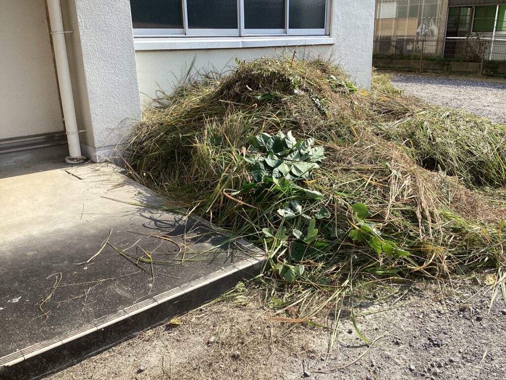 そんな陰凉寺山や体育館周辺など、いろいろな場所の草を、シルバー人材センターの方々に刈っていただきました。ありがたいことです。