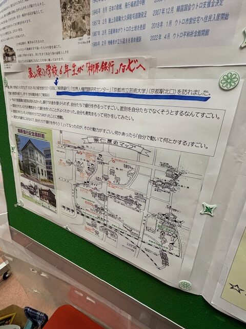 その会場で、「ヒューマンネットワーク」さまのブースにおいて、亀山東小学校の6年生が修学旅行の最初の目的地として「柳原銀行」「世界人権問題研究センター」「京都市立芸術大学」を訪れたことを紹介していただきました。