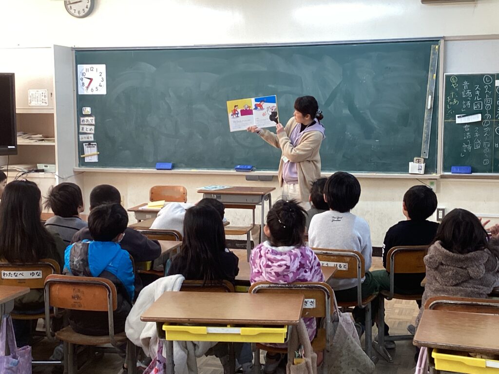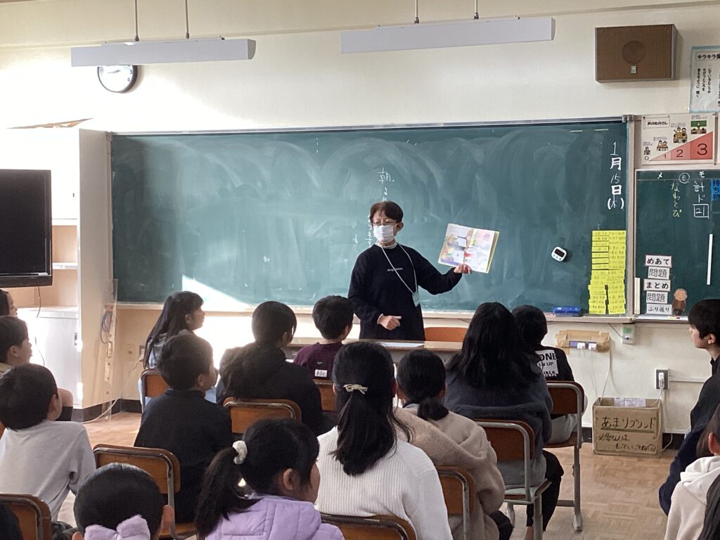 本日、今回も図書ボランティアの方々のご協力を得て、2・3年生の学級でよみきかせをしていただきました。