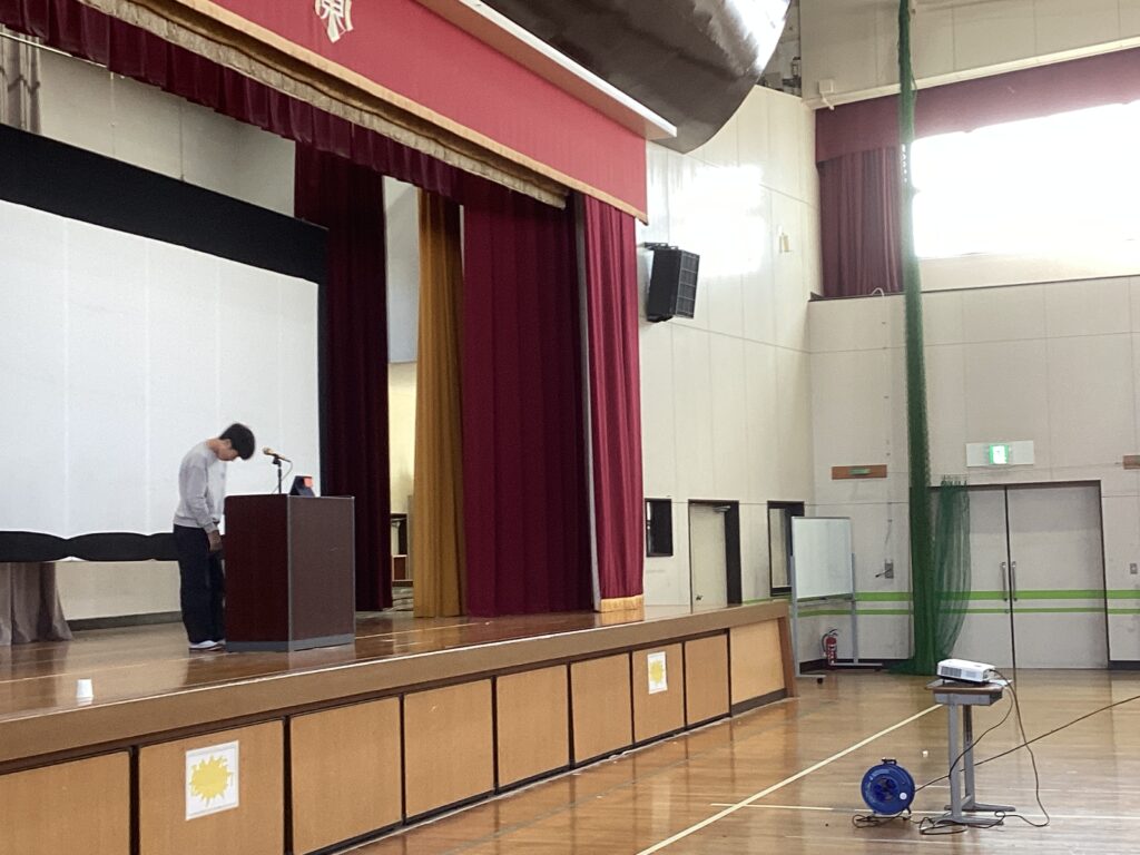 今回の「とちの木集会」は、前期最後の集会ということで、前期児童会メンバーのあいさつがありました。立派な姿だったと思います。