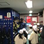11月26日、3年生が、亀山消防署と亀山警察署を訪れました。消防署では、各施設を案内してもらい、緊急出動に備えて様々な工夫がされていることを知りました。消防士さんが訓練をしている様子も見せていただき、命を守るお仕事に携わる方々の普段の備えと思いを知るよい機会となりました。警察署では、警察官の仕事や役割分担についてくわしくお話していただきました。警察官の持ち物については、目の前で実物を1つずつ見せてもらいました。パトカーや白バイにも乗車もさせていただきました。どちらの訪問先でも、少人数ならではの対応で、普段は見せていただけないところも見せていただくなどご配慮いただきました。見学した児童の中から未来の消防士や警察官が生まれるかもしれません。