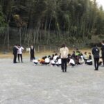 地震を想定した避難訓練を実施しました。緊急地震速報(テスト配信)を受けて、ダンゴムシのポーズなどで危険を回避し、指示に従って運動場へ避難しました。速やかに行動するだけでなく、危険察知能力を発揮しながら、命を守ることを最優先することを確認しました。11月には、濁り水が発生し、レトルト給食を実施するなど災害時の困難さを体験する機会もありました。そのことも踏まえ、いつどこで起こるかわからない災害に普段から真剣に備えておくことの大切さを再確認しました。