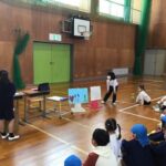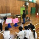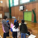 1・2年生の生活科の取り組みで、年長児のみなさんをお招きして、「あきふゆランド」を行いました。どんぐりや木の枝などを使い、6種類のあそびを考え、年長児のみなさんに楽しんでもらいました。「いらっしゃい!」「〇点です。おめでとうございます」と明るい声が体育館に響いていました。また、業間休みには、5年生と年長児さんとの交流の時間も取りました。入学後は、6年生となる5年生と仲よくなるために、「ふえおに」をして遊びました。来春の入学が待ち遠しいです。参加していただいたみなさん、ありがとうございました。