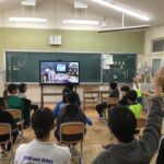市内複式を有する4校をオンラインで結ぶ交流を計画的に進めています。「かしのひ」とは、か:加太小 し:白川小 の:野登小 ひ:昼生小の4校です。今回(12月5日)は、加太小学校がホスト校となり、今年で150周年を迎えた加太小の運動場やみんなの森の変遷、ランドセルの今と昔などをクイズも取り入れて紹介してもらいました。他校は、その発表を聞き、よりよい発表となるにはどうしたらよいかを考え、感想を伝えたりアドバイスをしたりするなど伝え合う活動を行いました。子どもたちは、自校(昼生小)の様子と比べながら聞き、新しく知ったことや良かった点、改善点などを発表しました。