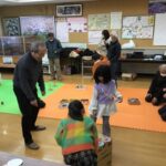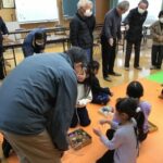 寒波の襲来で積雪があり開催が懸念されていましたが、1・2年生が昼生地区コミュニティセンターを訪れて、地域の方との「昔あそび交流会」を無事に行うことができました。子どもたちは、「めんこ」「輪投げ」「おはじき」「けん玉」「福笑い」「あやとり」「お手玉」「こま回し」「だるま落とし」「折り紙」などの昔のあそびを地域の方に教えてもらいながら、楽しそうに交流していました。最後には、「うまくできてうれしかった」「地域の方と遊べて楽しかった」「ベーゴマ回しも教えてほしい」など積極的に感想を発表できた子もいました。ご参加いただいた地域の皆さま、ありがとうございました。