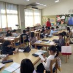 市内複式を有する4校をオンラインで結ぶ交流を計画的に進めています。「かしのひ」とは、か:加太小 し:白川小 の:野登小 ひ:昼生小の4校です。今回(12月5日)は、加太小学校がホスト校となり、今年で150周年を迎えた加太小の運動場やみんなの森の変遷、ランドセルの今と昔などをクイズも取り入れて紹介してもらいました。他校は、その発表を聞き、よりよい発表となるにはどうしたらよいかを考え、感想を伝えたりアドバイスをしたりするなど伝え合う活動を行いました。子どもたちは、自校(昼生小)の様子と比べながら聞き、新しく知ったことや良かった点、改善点などを発表しました。