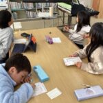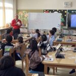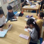 12月16日、昼生郵便局長さんを講師にお迎えし、1~3年生が、年賀状作りにチャレンジしました。年賀状の文化を知らない児童もいる中、お手紙の書き方からていねいに教えていただきました。書きやすいようにシートを使ったり、被り物をして楽しく教えていただいたりして楽しい時間となりました。2026年は午年です。タブレットで調べながら、干支の絵を描いて色も塗っていきました。子どもたちは、しあわせを届けたいと心を込めて書いていました。