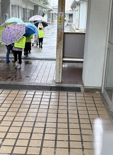 下校途中では、多くの保護者の方々が雨の中をお迎えに来てくださいました。皆様の温かい見守りのおかげで、子供たちも安心して家路につくことができました。悪天候の中でのご協力、本当にありがとうございました。
