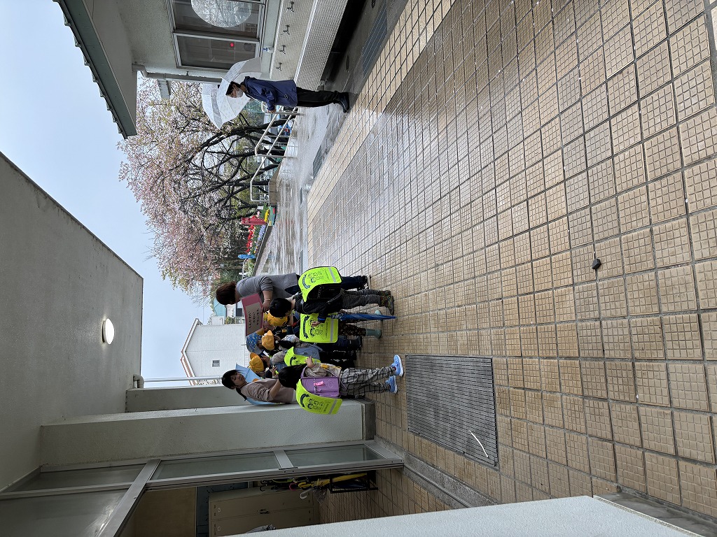 今日は、自分の下校地区を確認し、一緒に帰るお友達を知る大切な日。その後、先生たちと一緒に並んで、記念すべき「はじめての下校」を開始しました。真新しいランドセルを背負い、傘をさして歩くのは、1年生にとって大冒険です。付き添う先生方も、「車に気をつけてね」「もう少しだよ」と一人ひとりに優しく声をかけ、雨の中でも安全に、そして頑張って歩けるよう見守りました。