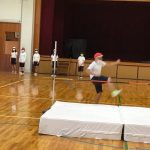 体育の授業では、1・2年生がマット運動をしていました。何回も練習するうちにじょうずに回れるようになっていました。また5・6年生が高跳びをしていました。自分のベスト記録が出せるようがんばっていました。