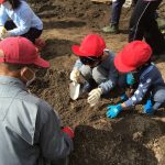 10月28日、2限目に1・2年生がさつまいものいもほり体験をしました。北在家の畑で5月に苗植えをしてから地域の方にお世話していただいたさつまいもが、とても大きく育っていました。子どもたちは、おいもを傷つけないようにていねいに掘っていきました。たくさんの大きなさつまいもがとれて、みんながうれしそうでした。