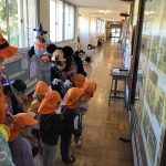 休み時間には、加太保育園の園児のみなさんが、ハロウィンの催しで来校しました。「Trick or treat」と元気に校長室のドアをノックして、思い思いに仮装した姿であいさつをしてくれました。