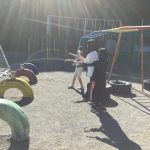 おだやかな天候の下で、子どもたちは落ち着いて学習に取り組んでいました。