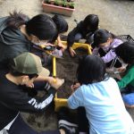 6限目には「花いっぱい活動」があって、地域の花ボランティアさんと一緒に花苗の鉢上げをしました。「卒業式や入学式に花がいっぱい飾れるように大事に育てよう」と、花ボランティアさんから言葉かけがありました。