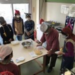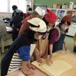 12月9日5・6限に4・5・6年生がクラブ活動で「うどん作り」を体験しました。北在家の北澤さんご夫妻に来校いただき、本格的なうどんの作り方を教えていただきました。実際に使用するこね鉢やのし板を使わせていただき、塩水を作るところから、粉と混ぜるところ、綿棒で薄く延ばすところ、4ミリにそろえて切るところなど、順を追ってていねいに教えていただきました。やってみると、とてもむずかしいことがわかり、北澤さんの職人技に感心していました。