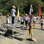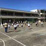 全校で運動会に向けて練習をしました。今日の練習は、入場行進と開会式、全校ソーランの練習です。入場行進では、校旗、優勝旗、児童会旗に続いて、たてわり班ごとに班旗をもって入場します。初めての入場行進でしたが、みんな元気よく列を整えながら行進することができました。その後、選手宣誓やラジオ体操の練習もしました。ソーランの練習では、円や直線に間隔をとってきれいに並ぶ隊形移動の練習をしました。昨年度も行っている高学年はイメージがわくため、指示を聞いてすばやく動き、低学年に教えてあげていました。運動会当日に向けて全員で練習に励んでいきたいと思います。
