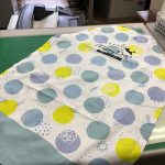 5年生が家庭科の学習でミシンを使ってエプロンを作りました。ミシンの糸のかけ方やミシンの使い方の練習をした後、いよいよエプロンづくりです。はじめに、布を裁った後、三つ折りにしてアイロンをかけました。その後、ミシンで最初と最後の返し縫いを忘れずに、直線縫いをしました。子どもたちは、なるべく端の方をまっすぐに縫おうと最後まで集中していました。何度も直線縫いをしている間に、上手になっていく子どもたちです。あっという間に見事な仕上がりのエプロンができました。
