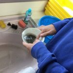 今回の授業では、身の回りにある砂と火山の噴火でできた火山灰の成り立ちが違うことに着目し、火山灰にはどのような特長があるのか、火山灰と砂を顕微鏡で観察しました。水で火山灰をよく洗ってペトリ皿に移した後、顕微鏡で観察するとともに、タブレットで撮影して、記録活動も行いました。児童からは、「火山灰には角ばっているものが多く、ガラスのように透明なものもあった。」「火山灰は水のないところでも降り積もることがあるし、火山や地震の活動は様々な土地の変化をもたらすことが分かった。」などの意見がありました。