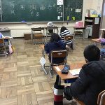 朝の会終了後、8時35分から8時50分までの時間は、朝の学習時間です。今日は、1年生は漢字の練習、2年生は国語のプリント学習と九九練習、4年生は、国語の短時間学習のプリント学習、5・6年生は外国語科の短時間学習を行っていました。5年生は、「in・on・by」の違いを学習し、物がどこにあるのかをたずね合う練習をしました。6年生は、何になりたいかをたずね合う練習をしました。子どもたちは、デジタル教材を使いながら繰り返し練習をする中で、自然に単語やフレーズに慣れ親しむことができました。