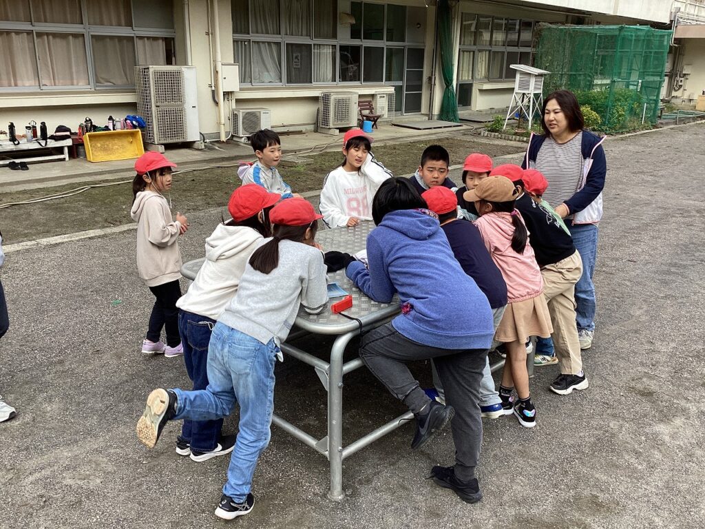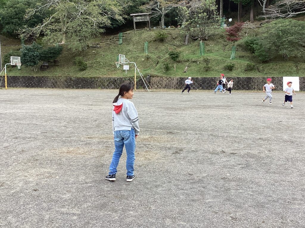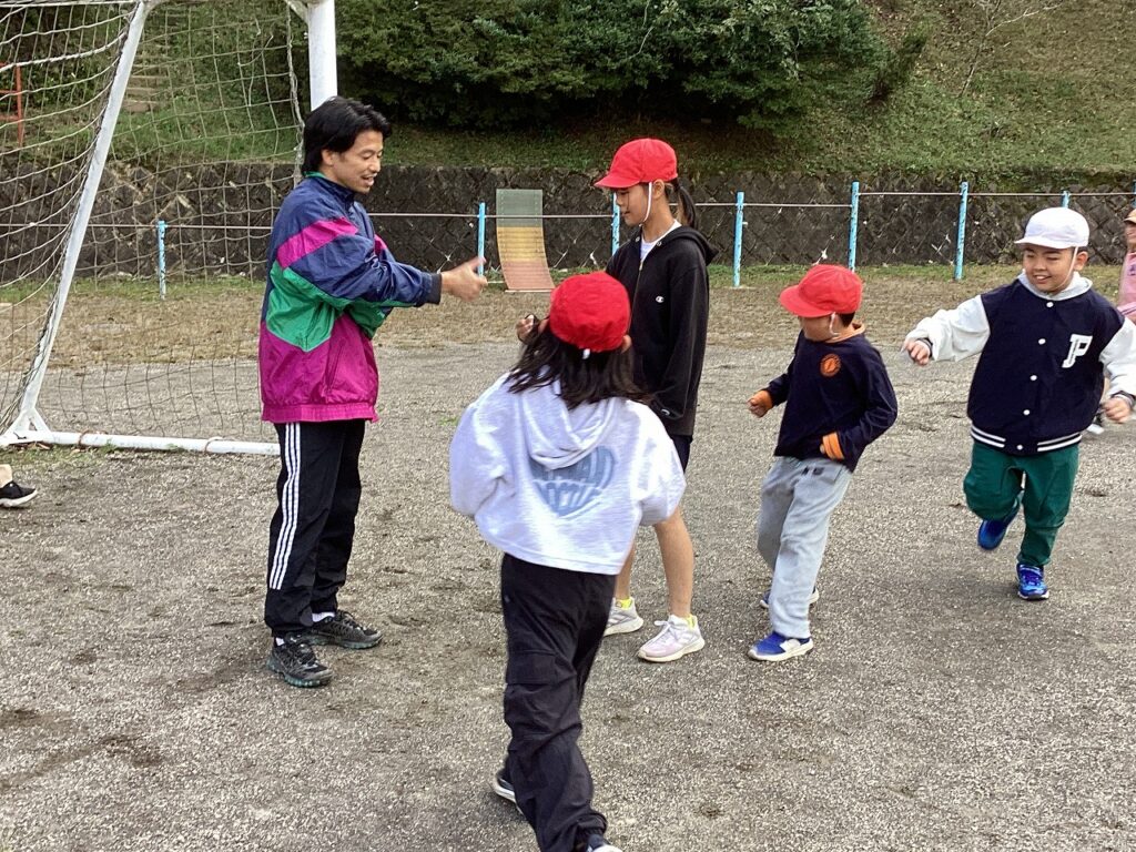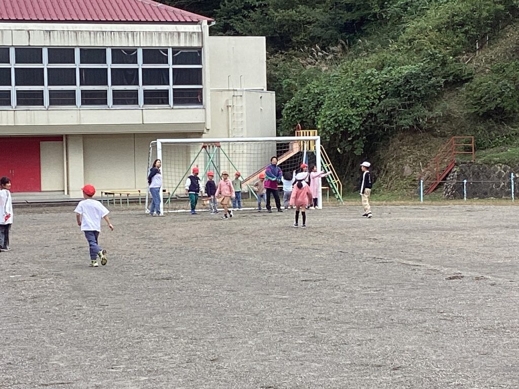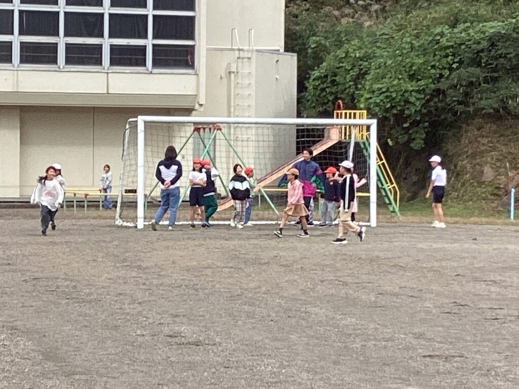 先日、ロング昼休みの時間に3・4年生が考えた「門番おにごっこ」を全校でしました。サッカーゴールが牢屋、その前に門番が立ちはだかっています。子どもたちは、その門番とじゃんけんをします。門番に勝ったら捕まっていた人は、全員逃げられます。オニに捕まらないようにみんなが必死に逃げ回っていました。終了後、他学年からは、楽しい遊びを考えてくれた3・4年生にありがとうのメッセージを送りました。