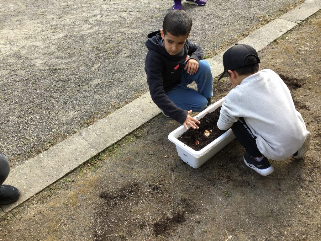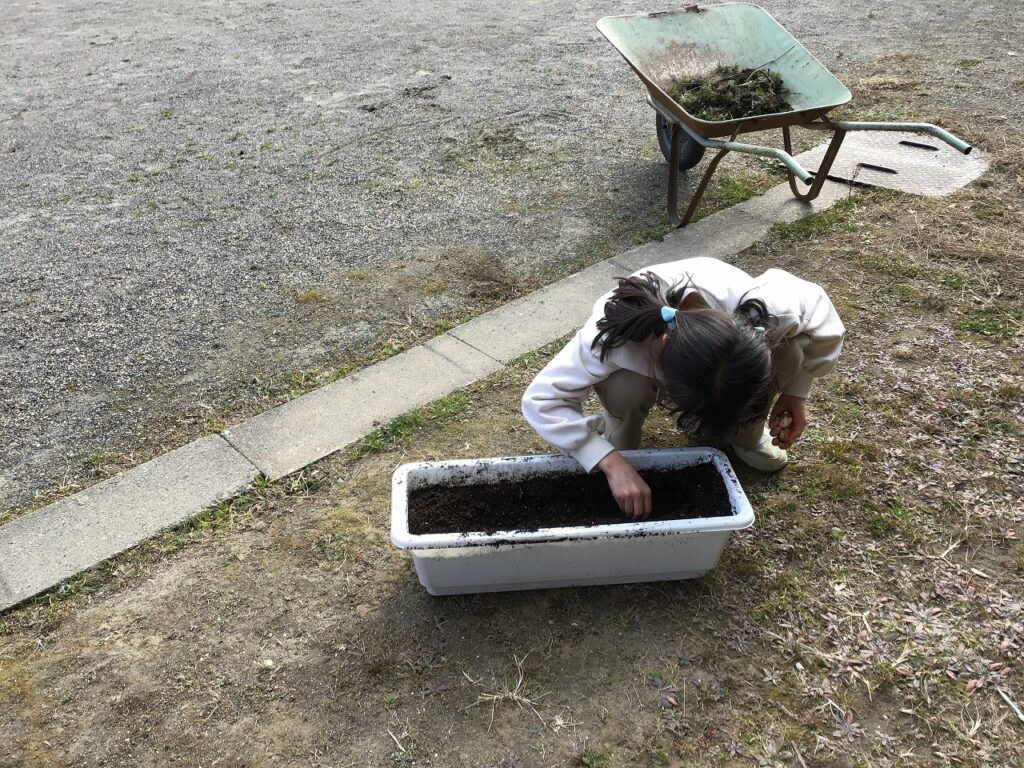 花いっぱい活動を行いました 投稿日時: 2026年1月19日 投稿者: kabuto 今日は、花いっぱい活動の日です。子どもたちは、地域の花ボランティアさんと一緒にチューリップの球根をプランターに植えました。その後は、花ボランティアさんと一緒に運動場の草ぬきをしました。