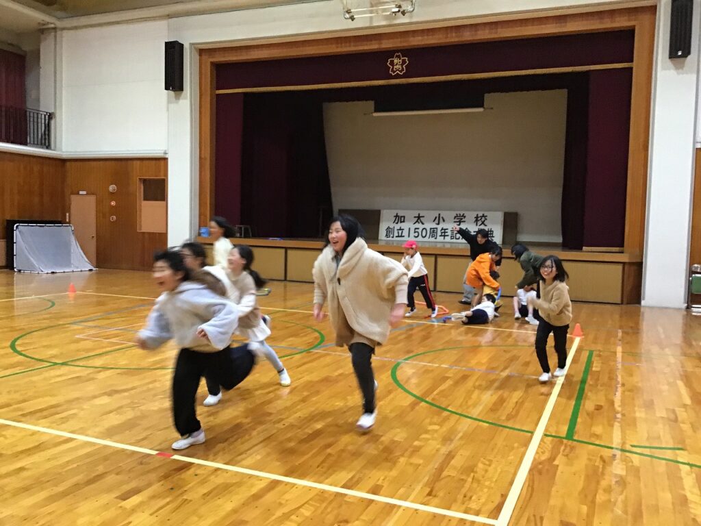 先日、ロング昼休みの時間に新入生交流会が行われました。今回の企画運営は児童会です。最初に新入生が名前と好きな食べ物を言って自己紹介しました。その後、だるまさんの一日とミニつなひきをして在校生、新入生一緒に遊びました。最初は少し緊張気味だった新入生でしたが、在校生がそっと声をかけたり助けたりすることで少しずつ慣れ、楽しくみんなで遊びました。4月からは、加太小学校の仲間です。みんなで入学の日を待っています。