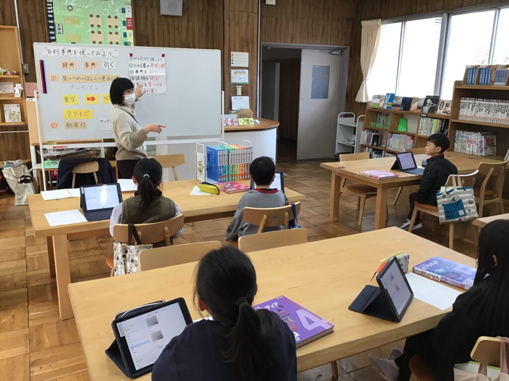 学校図書館活用アドバイザーの方による授業が3年、4年、5年対象に行われました。3年生は、「百科事典を使ってみよう」4年生は、「都道府県について調べよう」、5年生は、「椋鳩十を知ろう」です。学んだことをもとに、今後も図書の本を活用していってほしいと思います。