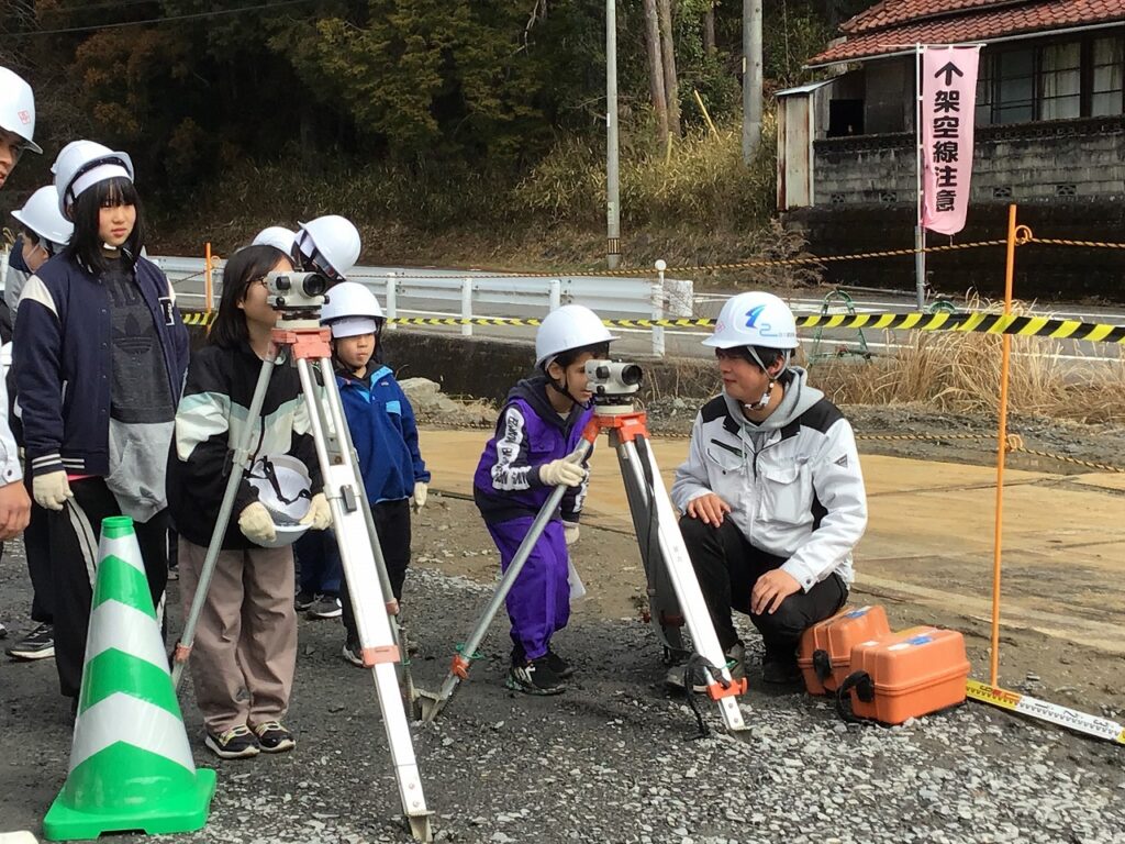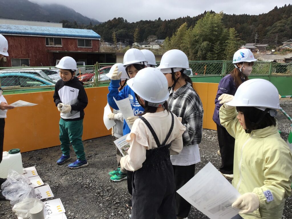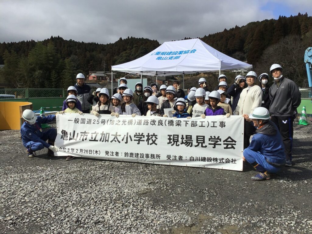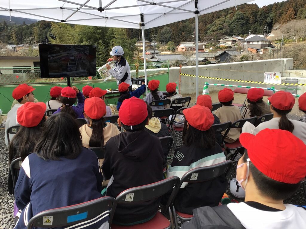 今日は、校区の加太市場内で現在工事中の猪之元橋の工事現場を全校で見学しました。工事中の橋脚の様子や3次元データ活用による完成までの画像・動画を見たり、バックホウの操作室体験や測量機器体験、コンクリート生成実演などの体験をしたりしました。子どもたちは、「バックホウの操作が難しそうだ。」「コンクリートは、セメントや砂、砂利、水を混ぜたものでできていることを知った。」「元の橋はどうなるのだろう。」「新しい道ができて加太の未来が楽しみだな。」などと、様々な感想をもっていました。
