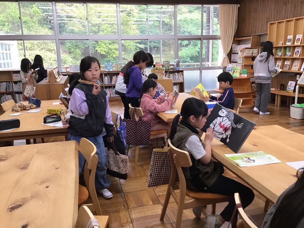 学校司書さんによる図書館オリエンテーションが全学年対象に行われました。オリエンテーションでは、本の貸し借りについて確認したり分類について教えてもらったりしました。また、著作権についての学習も行いました。今年度も温かい雰囲気のする図書館を利活用してほしいと思います。