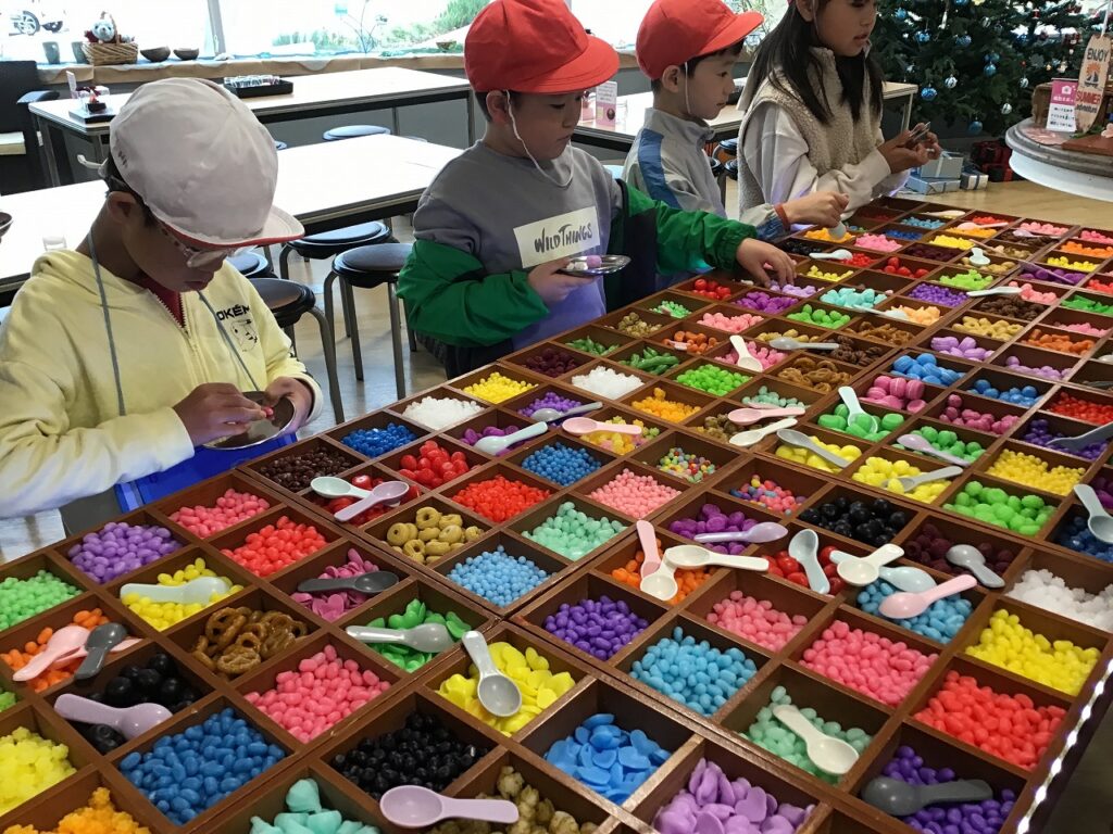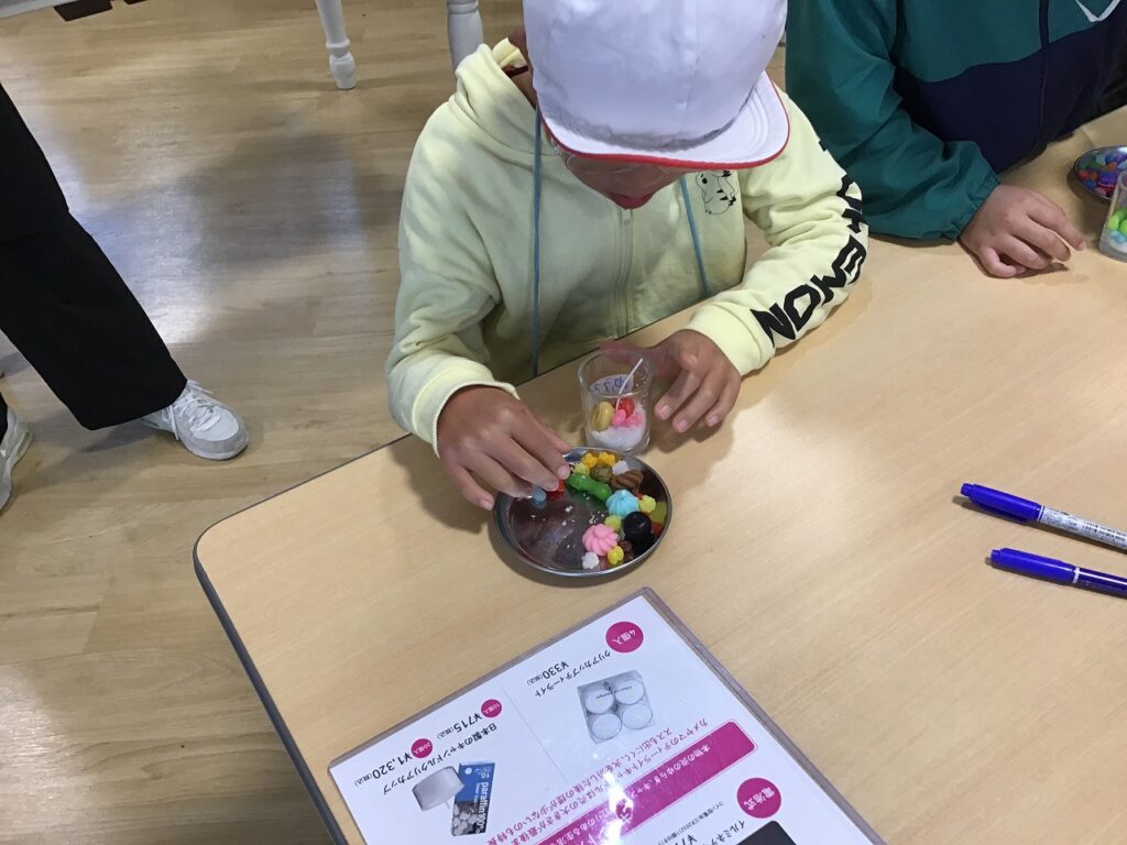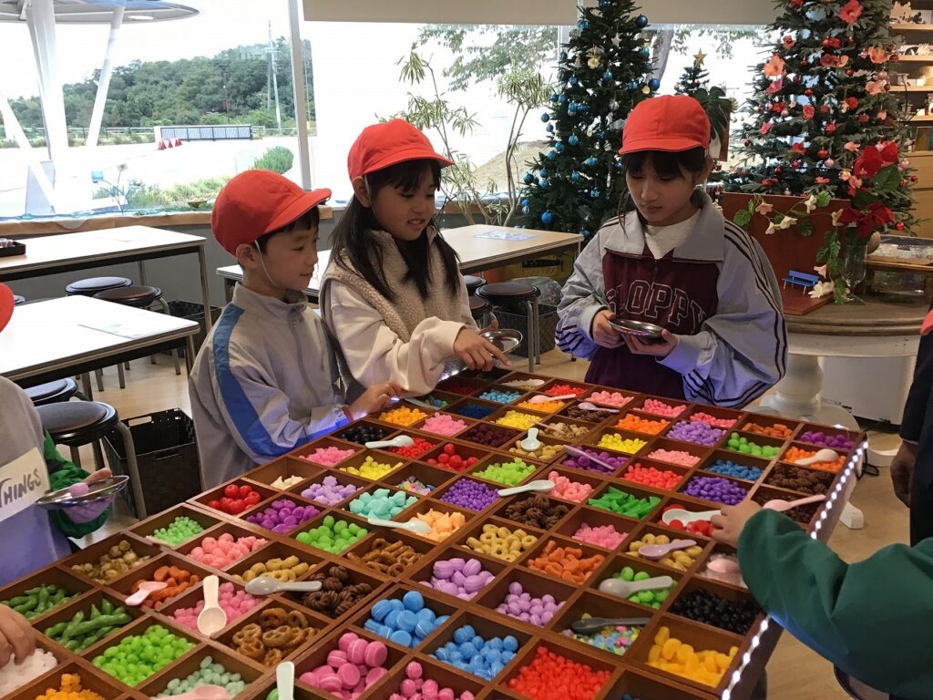 3年生が、社会科の校外学習として亀山ローソクタウンに行きました。最初に、手作りキャンドル体験です。色とりどりのかわいいローソクを目にした子どもたちは、どのローソクを選ぼうか思案中です。決まったら、選んだローソクをビンの中に入れて、自分だけのキャンドルを作っていきました。その後、工場見学をし、ローソクの製造工程を学習しました。工場内のビデオを見たり、機械が動いている様子を見たりしながら一生懸命にメモをとっていました。