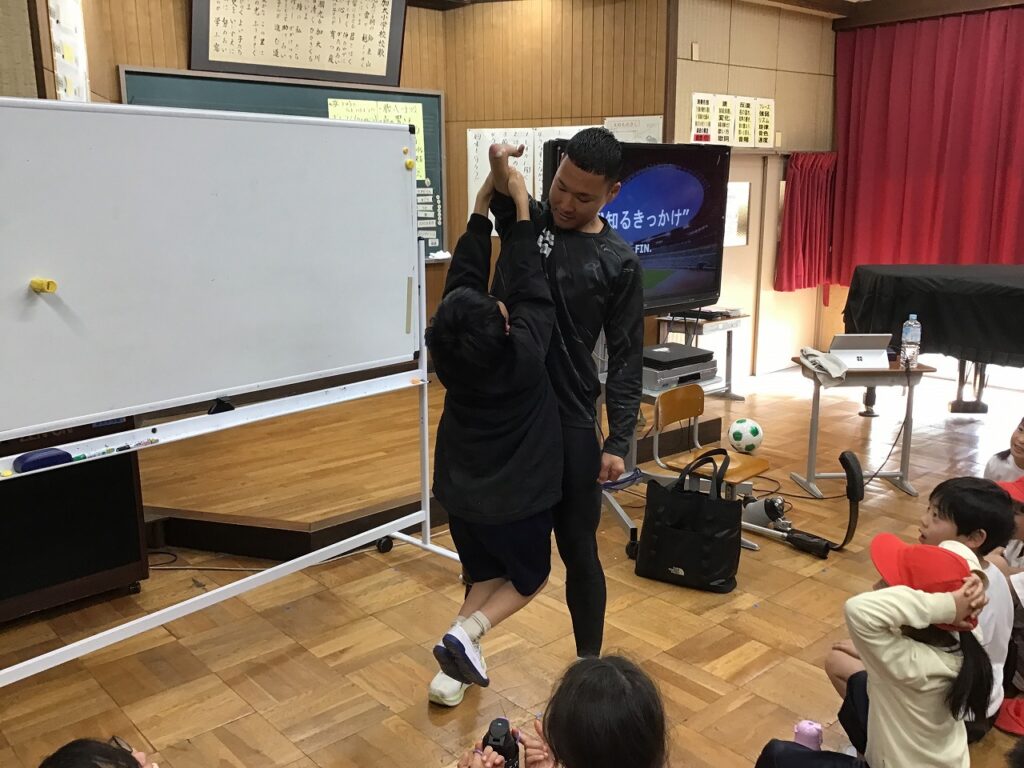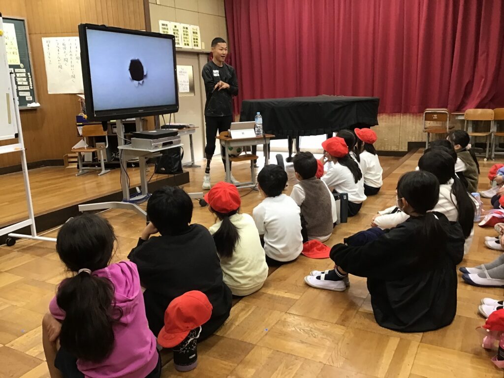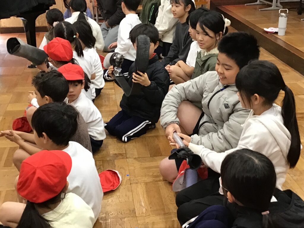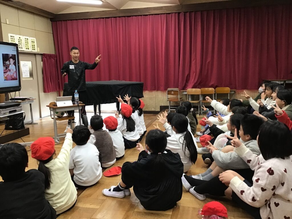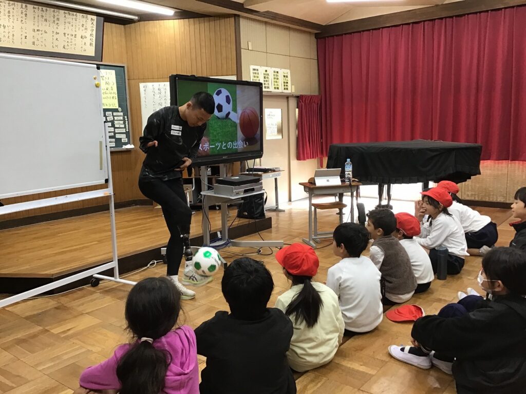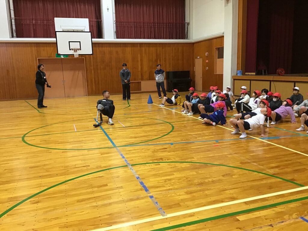 世界パラ陸上競技選手権銅メダリストの選手が本校に来校され、体育の授業を子どもたちにしてくださいました。自分自身のことをお話いただいた後、競技で使用する道具の説明や銅メダルを披露していただきました。そのあと、体育館で陸上の走ることにつながるからだづくりの運動を教えてもらいました。子どもたちは、まっすぐな姿勢やジャンプ、ケンケンが速く走ることにつながることを体験を通して学ぶことができました。自分の可能性を信じ、夢に向かって生きる方との出会いは、子どもたちにとって大きなm界パラ陸上競技選手権銅メダリストの選手が本校に来校され、体育の授業を子どもたちにしてくださいました。自分自身のことをお話いただいた後、競技で使用する道具の説明や銅メダルを披露していただきました。そのあと、体育館で陸上の走ることにつながるからだづくりの運動を教えてもらいました。まっすぐな姿勢やジャンプ、ケンケンが速く走ることにつながることを体験を通して学ぶことができました。自分の可能性を信じ、夢に向かって生きる方との出会いは、子どもたちにとって意義深いものでした。
