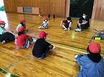 場所は体育館で行いました。はじめの会として、児童会会長の話とプログラムの説明を行いました。司会及び進行はすべて児童会です。その後新入児と在校生との交流として、「たいこの数だけ集まろう」、「だるまさんが転んだ」をしました。少し緊張気味だった新入児も、みんなでふれ合い、楽しむ中で、次第に表情もほぐれて、にこやかになっていきました。