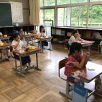 今日の4年生総合的な学習の時間は、昔の学校について調べ、タブレットにまとめたことの発表です。アンケート結果をグラフにまとめたり、調べたことをクイズ形式にしたりしながらわかりやすくみんなに伝えていました。子どもたちは、原稿を見ずに自分の言葉で相手意識をもって発表することができていました。そして、友だちの発表を聞いて質問や感想を伝えたり、まとめ方や発表の仕方について自分との違いを見つけたりしながら学びを深めていました。