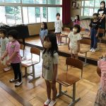 今日は、2学期最後の音楽の授業でした。1・2年生はみんなで楽しく歌を歌ったり、手遊び歌で遊んだりしました。最初は、「鉄腕アトム」の曲に合わせて身体表現をしました。だんだんスピードが速くなる曲に合わせて右左と体を動かします。少し、追いつかなくなるのも楽しいものです。次にペアで「おちゃらかほい」をしたり、全員で一つの輪になって「ずいずいずっころばし」をしたりしました。最後に、発声練習をした後、「校歌」や「世界が一つになるまで」「お正月」を歌いました。みんなで最後の音楽を楽しみました。