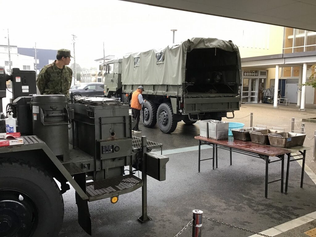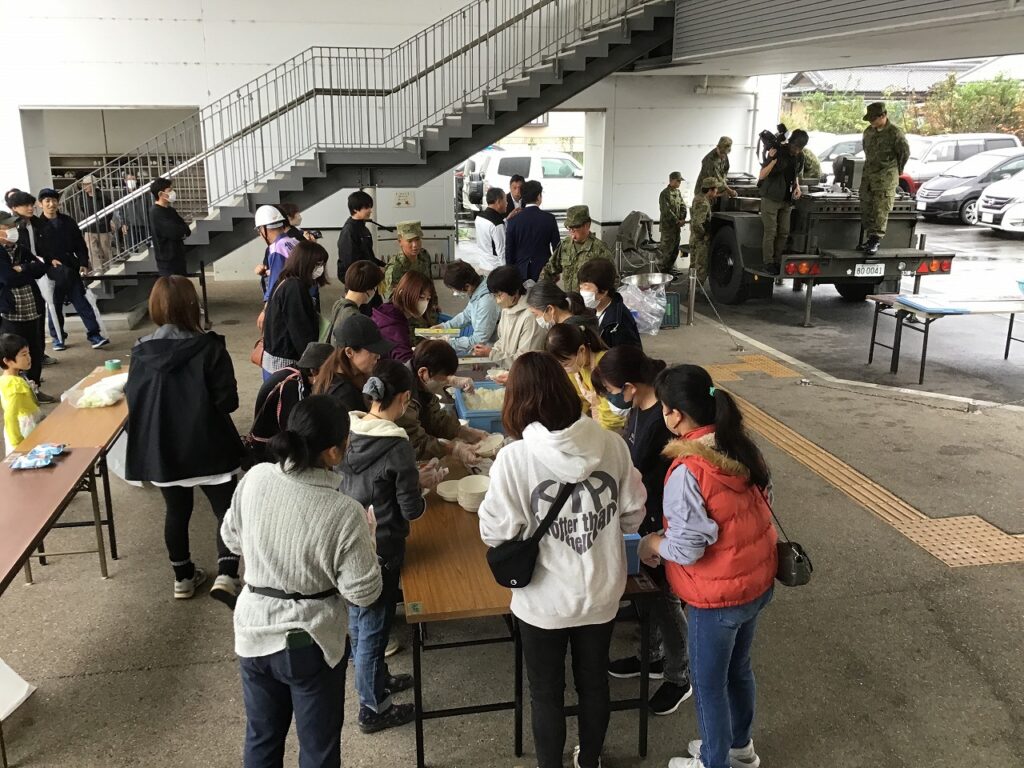 10月26日に亀山市総合防災訓練が本校を会場に行われました。当日はあいにくの雨でしたので、通常の訓練ではなく、縮小版の訓練が体育館で行われました。縮小版といっても、自衛隊による炊き出しと避難所開設訓練が行われ、川崎地区の住民の方々も多数ご参加いただきました。