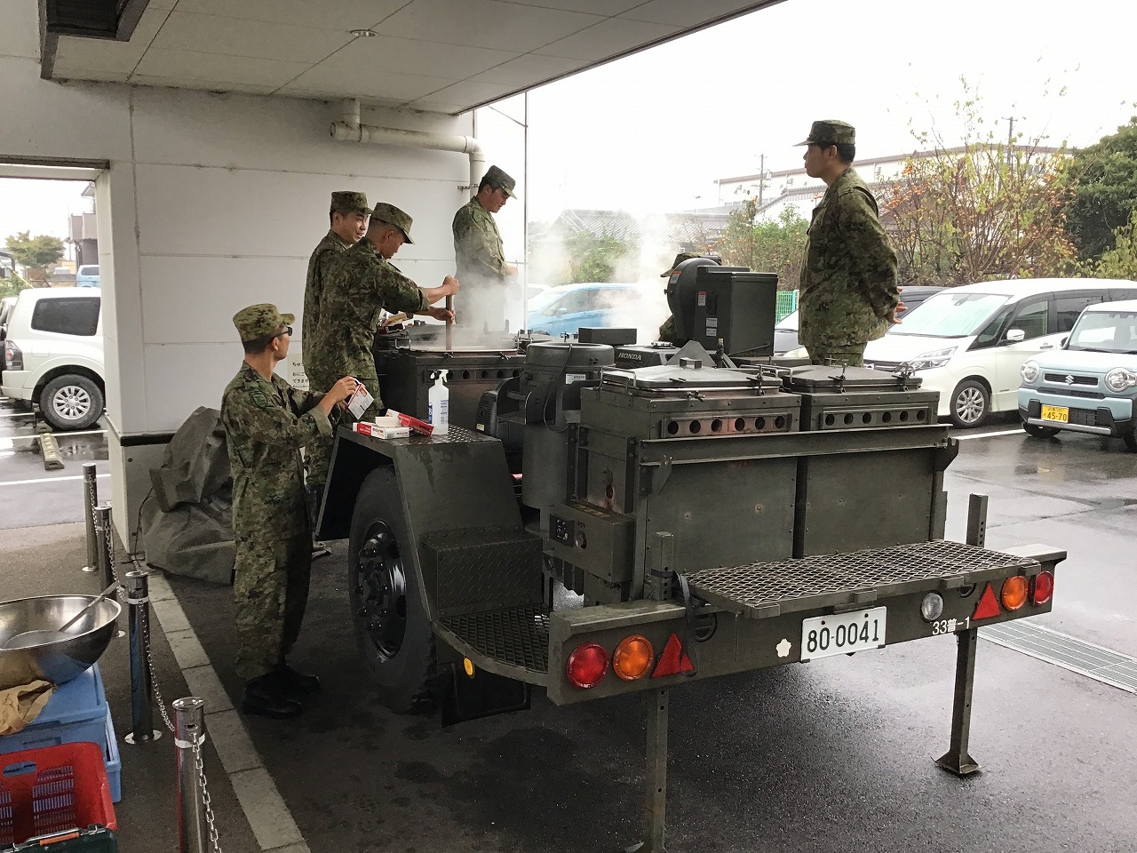 10月26日に亀山市総合防災訓練が本校を会場に行われました。当日はあいにくの雨でしたので、通常の訓練ではなく、縮小版の訓練が体育館で行われました。縮小版といっても、自衛隊による炊き出しと避難所開設訓練が行われ、川崎地区の住民の方々も多数ご参加いただきました。