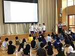 9月10日(水)~12(金)に中学生4名が本校へ職場体験学習に来てくれました。教育関係を職場体験先の事業所として選んでくれたことをうれしく思います。各担当クラスに入ってもらい、主に授業の補助、生活支援として子どもたちと遊ぶ、給食の配膳の手伝い、掃除指導など、校内環境整備、6年生へ中学校生活の紹介、児童への読み聞かせをしてもらいました。
