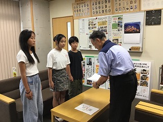 あいさつは人と人とをつなげる大事な出会いの言葉です。普段から地域の交通安全協会の方や川崎駐在所様が交通指導もかねてあいさつをしていただいておりますが、このような取り組みは地域の連帯感の醸成や地域ぐるみの防犯・防災活動につながりますので、学校いたしましても大変ありがたい次第です。