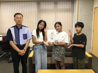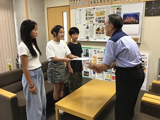 そこで、 9月19日に校長室において贈呈式を行いました。龍華様が児童会会長に目録を手渡し、このソファーセットとの思い出や寄贈するにあたってのお話をしていただきました。児童会役員からお礼の言葉を贈りました。