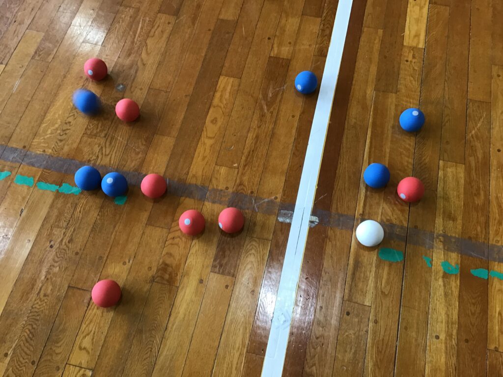 この日のなかよし集会は、全校遊び「なかよし班対抗ボッチャ大会」を実施しました。めあては、『協力して、勝負を楽しもう』としました。学年が異なる班員と交流をしながら、活動を通して相手のことを思いやり、みんなが楽しく遊べるように工夫して実施しました。子どもたちは、班員の仲間と共に声を挙げて、なかよく楽しんでいました。
