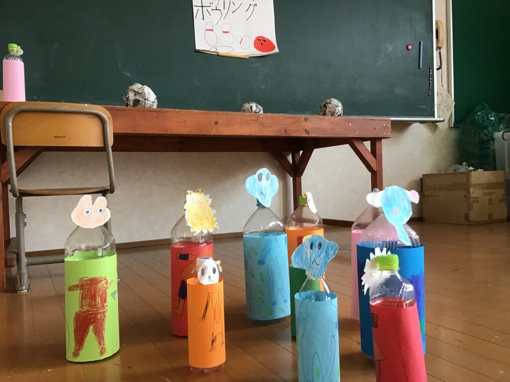 この日は、来年度の新入児が来校し、1年生と交流をもちました。1年生は、新入児が楽しめるように、どんとん相撲や魚釣り、ボウリングのゲームを作りました。昨年度も同様の交流を行いましたので、1年生は、自分が新入児だったときを思い出しながら、とても優しく、そして頼もしく接する姿が見られました。新入児も、とても嬉しそうに過ごしてくれていたので、きっと小学校へ入学することを、より楽しみにしてくれたと思います。