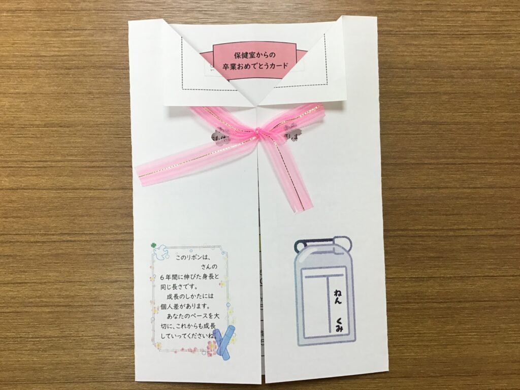 保健室の前や廊下には、養護教諭が健康に係ることで知ってほしいことや気を付けてほしいことを掲示しています。今回は、「姿勢を正しくしよう」です。寒い時期ですので、ついつい背中が丸まってしまいがちです。そこで、姿勢正しくすると、脳のはたらきが良くなったり、集中力がアップしたりする等の効果があることを、子どもたちが興味をもてるように、そして分かりやすいように示しています。