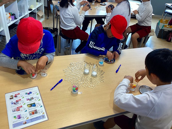 子どもたちはメモをしっかり取りながら学ぶとともに、ロウソクの美しさや香りも楽しんでいました。