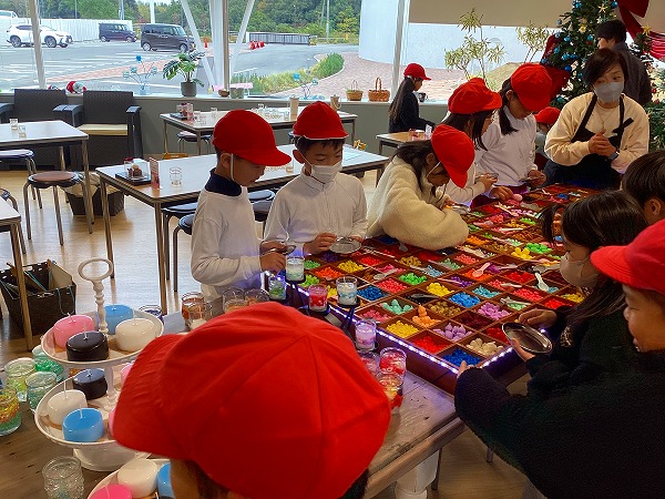 3つの班に分かれ、工場見学でロウソクのできるまでの様子を見たり、キャンドルづくりの体験をしたり、販売の様子を見たり、たくさんのキャンドルがともされた空間を楽しんだりするなど、たくさん見学や体験をさせていただきました。