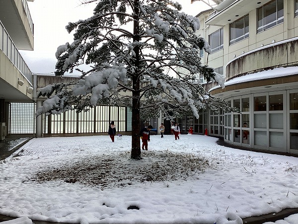 朝起きると一面の銀世界。今年度、一番積雪の多い日となりました。本日は、登校時の安全を考え、2限目からの始業とさせていただきました。