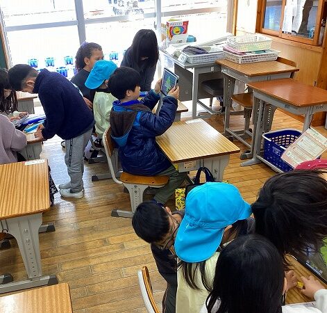 本校は、亀山市の日本語教室の拠点校です。平成3年に日本語教室「きぼう教室」が開設され、特別の教育課程により、多くの外国にルーツのある児童が、日本語の習得や教科学習を中心として学んできました。新たに、令和4年からは、来日したばかりの子どもたちの日本語習得と学習保障のため、初期日本語適応指導教室「レインボー教室」も開設されました。対象は、市内の小中学校に在籍している外国にルーツのある児童生徒です。授業では、日本語での基本的な日常会話、ひらがな、カタカナ、小学校低学年程度の漢字の読み書きなどを中心に学習しています。会話は、友だちとのやり取りを通して練習しています。また、学校生活に必要なことや、日本の生活習慣や文化についても学習しています。