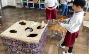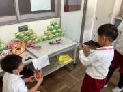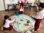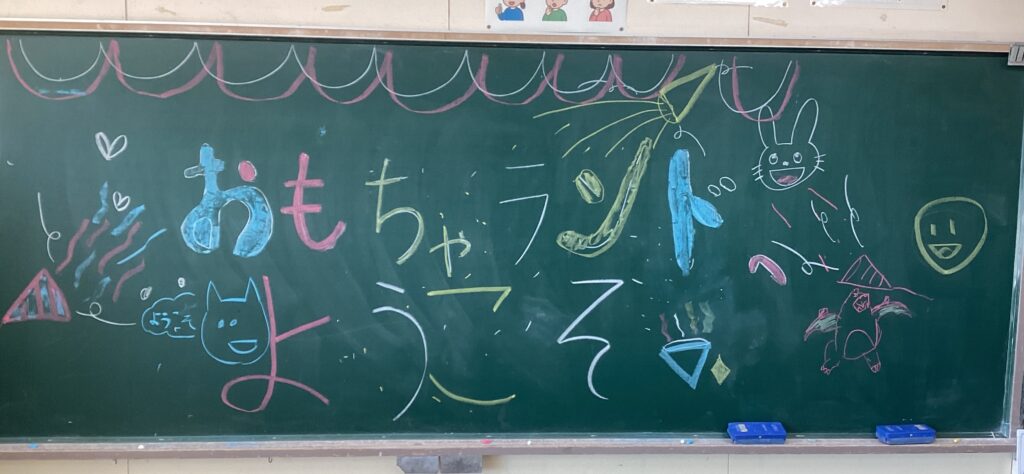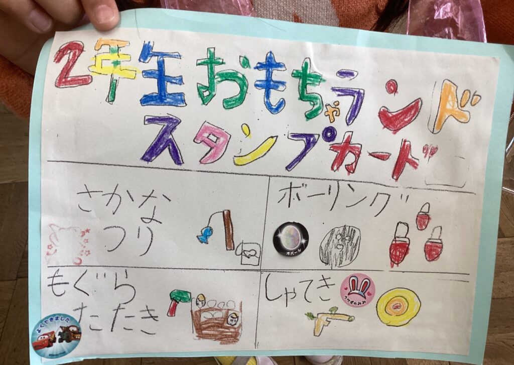 12月18日、生活科の時間に「おもちゃランドへようこそ!」と題して、2年生が1年生を自分たちでつくった「おもちゃランド」に招待しました。この日は2年生の子どもたちが考え、身近な材料を使って作ったおもちゃの遊び方を1年生に教え、もてなしました。この単元の目標は、「身近にある物を使って遊ぶ活動を通して、遊びや遊びに使う物を工夫してつくることができ、遊びや動くおもちゃを作ることのおもしろさ、身近にある物やおもちゃの動きの不思議さに気付くとともに、みんなと楽しみながら遊びをつくり出そうとすること」です。目標通り、2年生の子どもたちは、魚釣り、もぐらたたき、ボーリング、射的など、楽しいゲームをたくさん用意してくれ、また、1年生が楽しめるように、優しく遊び方を教えてくれていました。野登小学校内に、楽しい「おもちゃランド」ができあがりました。