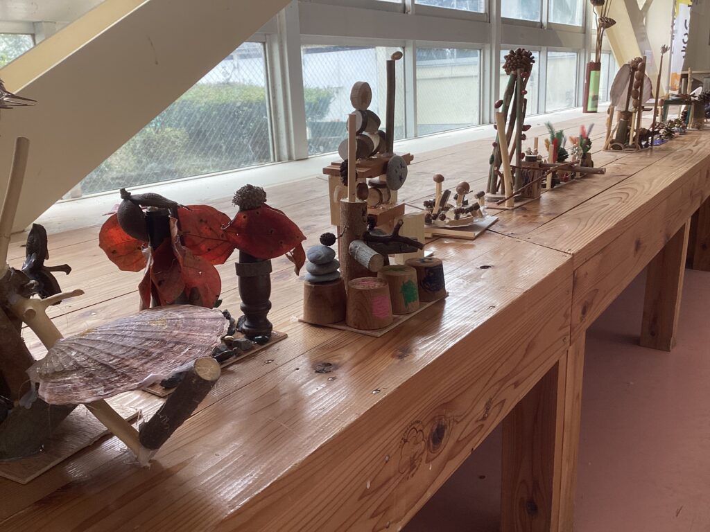 地域の方と三重県シェアリングネイチャークラフト協会の皆様にお世話になり、1、2年生が自然素材を使った工作体験をさせていただきました。始めに、校庭の紅葉した落ち葉を集めて、「葉っぱのコレクション」を行いました。自然と触れ合った後、図工室で木の枝や松ぼっくり、どんぐりなどを使って、子どもたちがそれぞれの自由な発想で工作を行いました。最後に、森林の役割についても説明していただき、自然を愛し、大切にしていく心についても教えていただきました。子どもたちは、身近にある紅葉した落ち葉や木の実などで「秋」を満喫していました。関係者の皆様、ありがとうございました。
